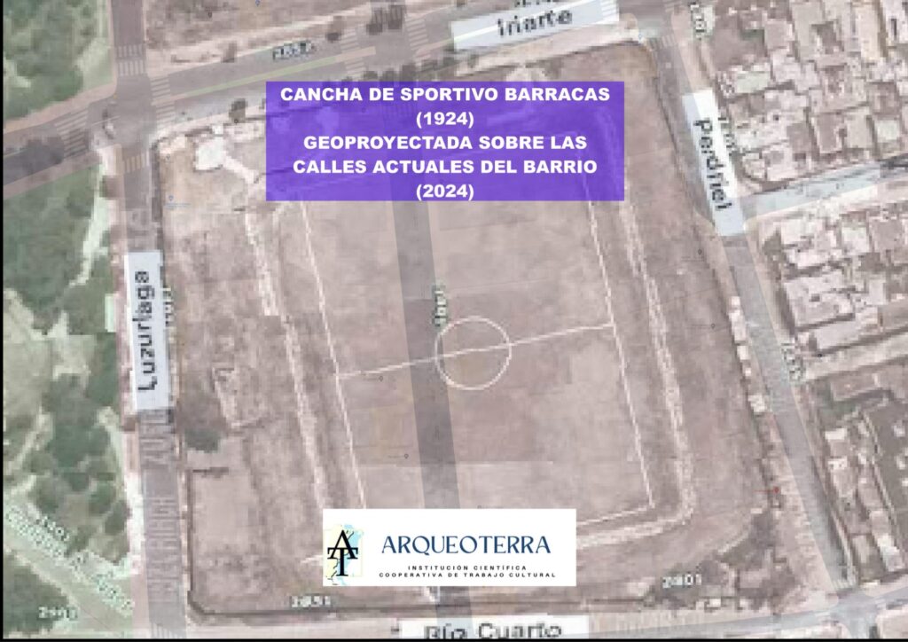 En el análisis histórico se reconoce que el predio donde estuvo ubicado el estadio en el barrio de Barracas, entre las actuales calles Iriarte, Perdriel, Luzuriaga y Río Cuarto, fue parcelado y su loteo pasó a manos de propietarios particulares. Por si fuera poco, el antiguo predio del campo de juego, fue atravesado de forma longitudinal por la apertura de la actual calle Rio Limay.