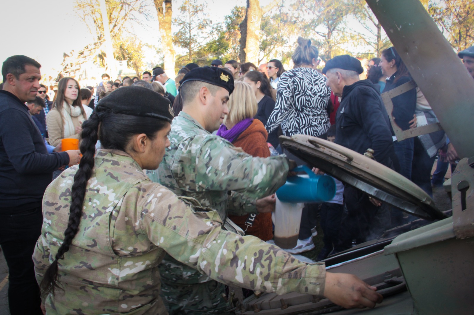 Por la tarde, soldados del Ejército sirvieron leche chocolatada a los presentes