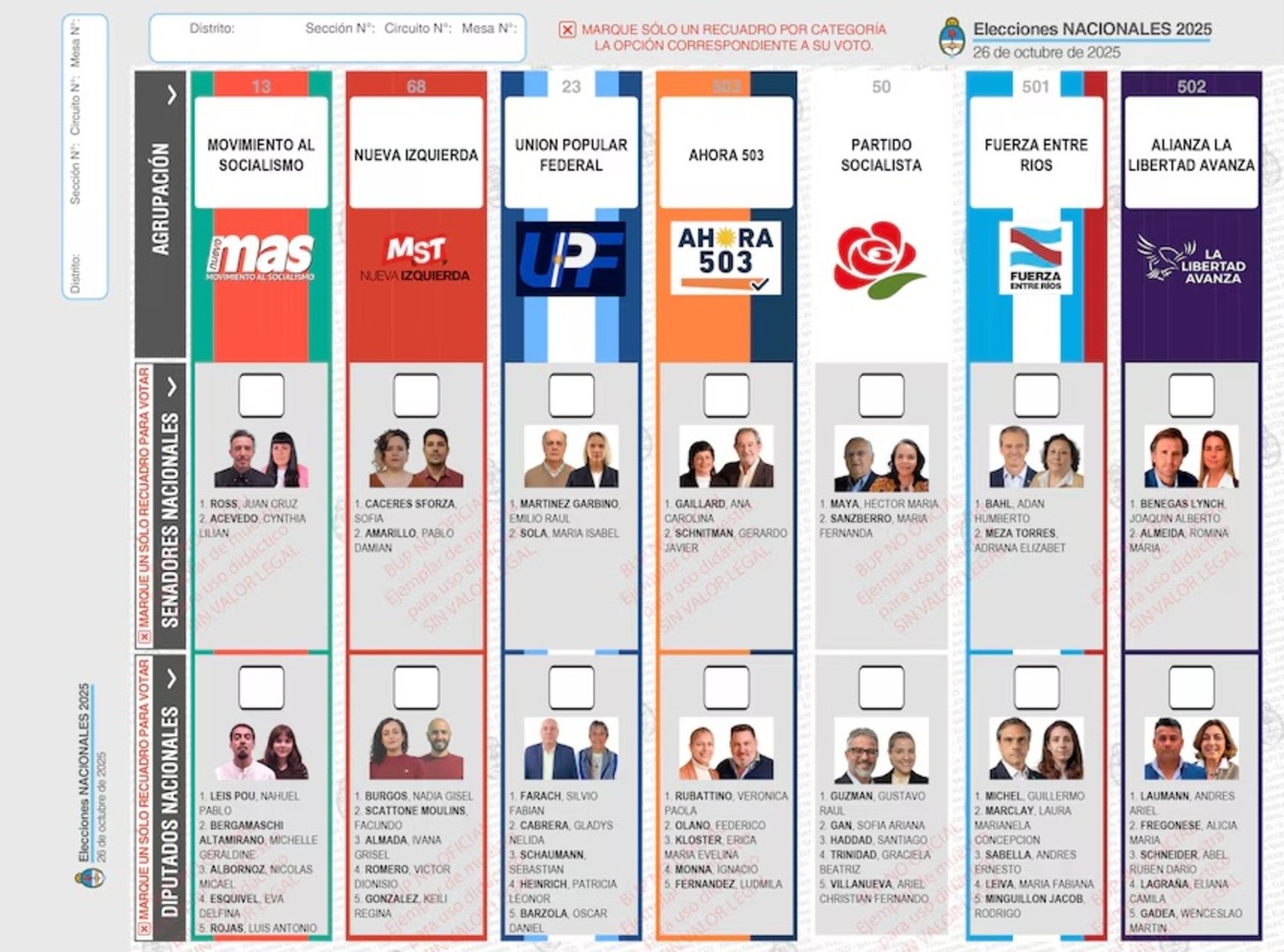Así será la Boleta Única Papel que encontraremos en las escuelas entrerrianas este 26 de octubre