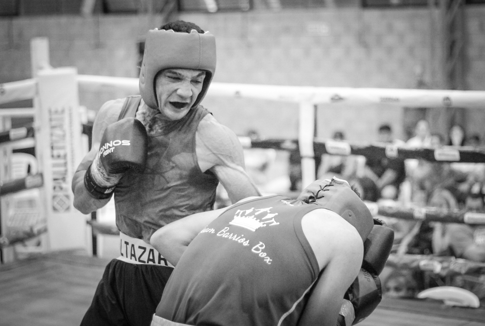 Burro salió a pelear sabiendo bien lo que tenía que hacer. Falló una sola cosa, hubo un mínimo detalle que lo dejó fuera de tiempo, ese golpe del gringo que llegó directo a su hígado. No llevaban seis segundos cuando aquella mano entró con todo, lo dobló hasta casi dejarlo de rodillas sobre las tablas. Dolió. Primero no, fue doliendo de a poco hasta ser insoportable. Después de ese masazo, las piernas no sirvieron más que para sostenerlo. El gringo se plantó en el centro, rotaba sobre su eje y sacaba golpes con los dos brazos. Ningún desgaste, golpes que parecían blandos, pero que se iban acumulando y hacían que Burrito se volviera cada vez más rígido.